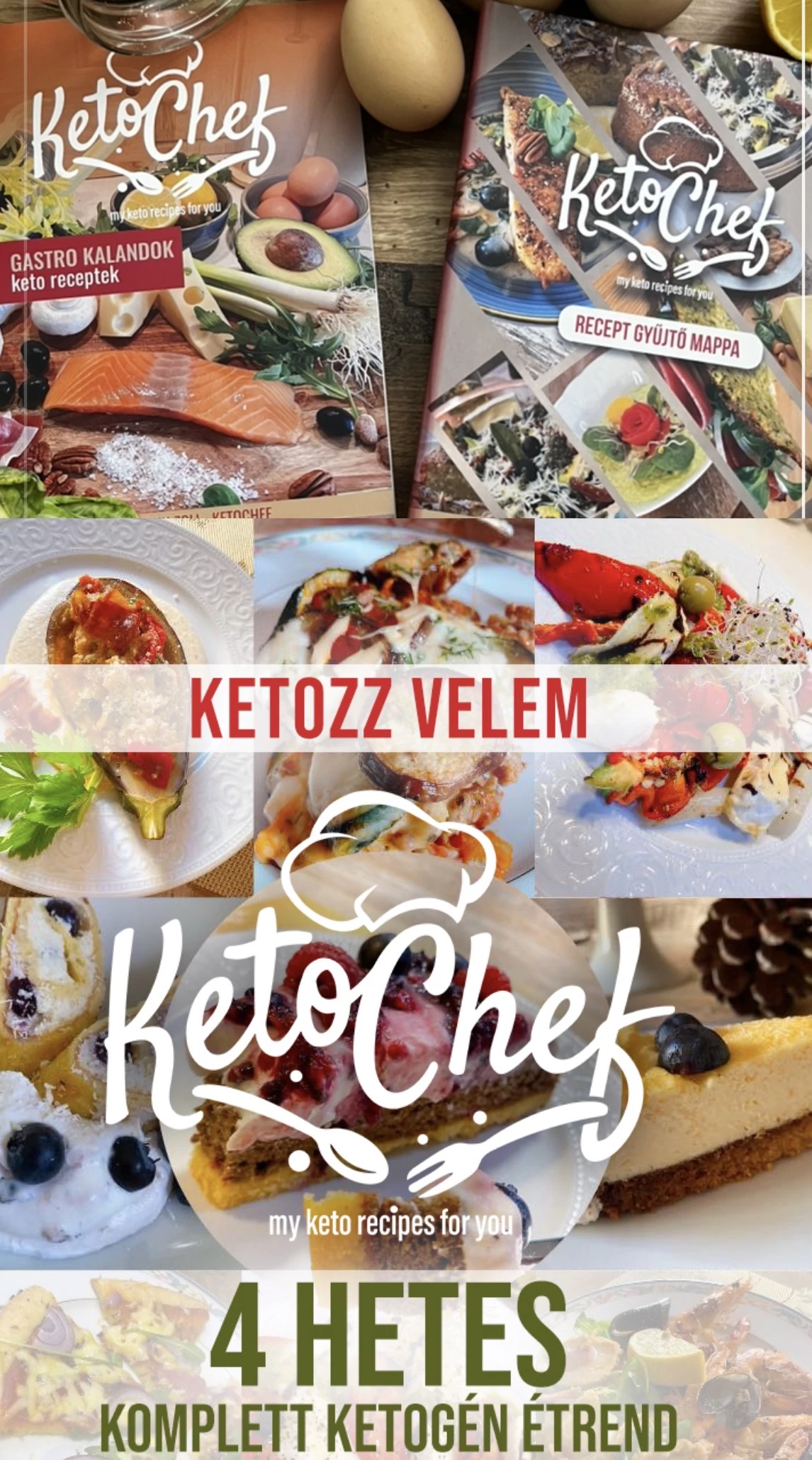-Ketochef Gastro Kalandok receptes kézi könyv 70 nagyszerű fogással és desszerttel, 140 oldalon át.